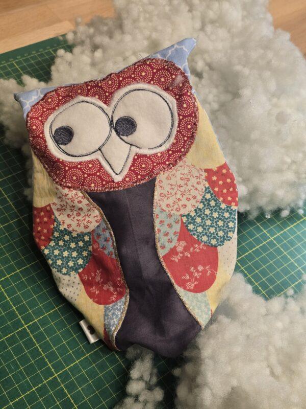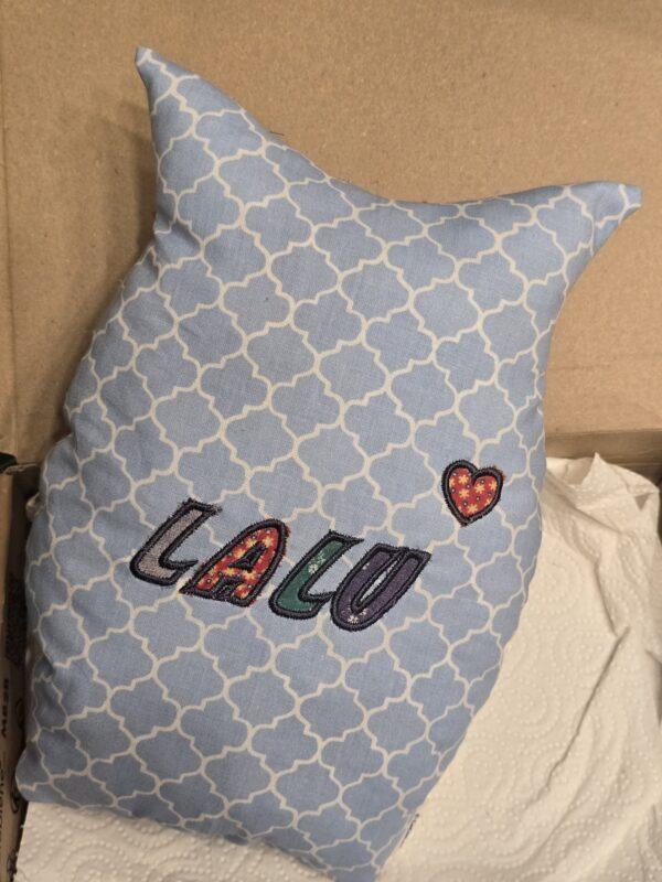 LALU ist eine sehr betagte Eule. Sie erfßllte ihren Kuschel- und TrÜsterdienst schon sooooo viele Jahre und das merkt man ihr auch an. Der Stoff ist mittlerweile sehr dßnn geworden, an mehreren Stellen eingerissen und mehrfach repariert worden. Jetzt ist es aber soweit: LALU kommt als Notfall in meine Flausch-Ambulanz und bekommt ein Makeover. Zu retten sind die dßnnen Flßgelchen und Teile des KÜrperstoffs. Das Fßllmaterial muà gehen! Ich habe eine Schablone nach dem Original angelegt, Stoffe mit Antje besprochen, die Eule genäht. Die Flßgel bekommen eine Stabilisierung und werden neu appliziert. Da wir nur 2 Flßgelseiten retten konnten, wollte ich die Rßckseite nicht einfach leer lassen. Deshalb habe ich aus den alten restlichen Fitzelchen Stoff das Wort LALU als Applikation mit dem Stoff aufgenäht + einem kleinen Herz. Ich finde LALU ist jetzt fit fßr den Kuscheleinsatz.