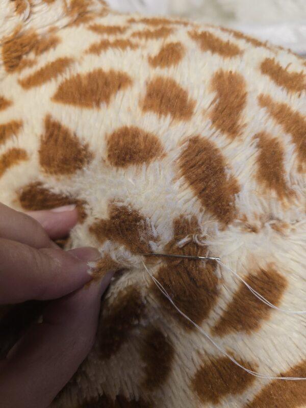 GIRAFFY ist eine Stofftiergiraffe, die schon seit 12 Jahren sein 22-jähriges Herrchen begleitet. GIRAFFY ist schon mehrmals in der Waschmaschine gelandet, um dann stets frisch und munter ihren Job als Kuffel-Schutz-Schmuse-Stofftier zu erfĂźllen. Aber die FĂźllung ist mittlerweile verfilzt und verklumpt. Die FĂźllung fĂźllt viele Bereiche nicht mehr aus und verformt alles, sodass GIRAFFY ganz traurig in den Seilen hängt … Meine Kundin brachte mir GIRAFFY persĂśnlich vorbei und bei Ăźber 100 cm längste Seite kam schon eine riesen Menge an FĂźllwatte zum Einsatz.