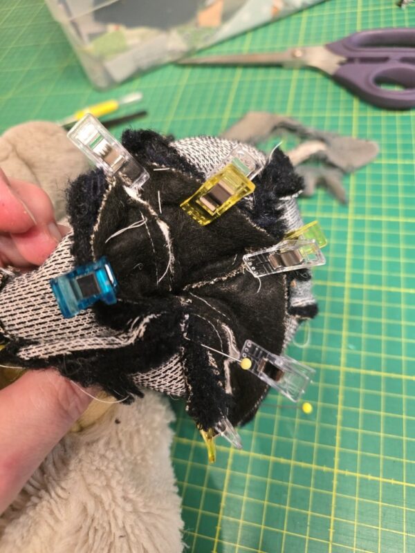Uihh – da habe ich mich erstmal gar nicht rangetraut … Julia hat mir ihren Pinguin geschickt, der einen zerrissenen Schnabel hat. Ja, ok. Aber der ist so zerrissen, dass ich da kein Schnittmuster einfach anlegen kann. Es hat 3 Versuche gebraucht, bis ich mit dem Ergebnis zufrieden war.