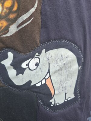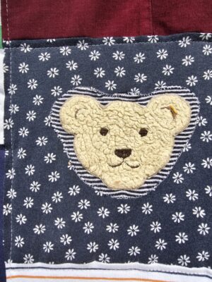 - Logos und Motive bleiben erhalten, werden nicht blind abgeschnitten, sondern unterschiedlich passend eingepuzzelt. Fehlende Lücken kann ich mit unifarbenen Stoffen auffüllen (nach Rücksprache)