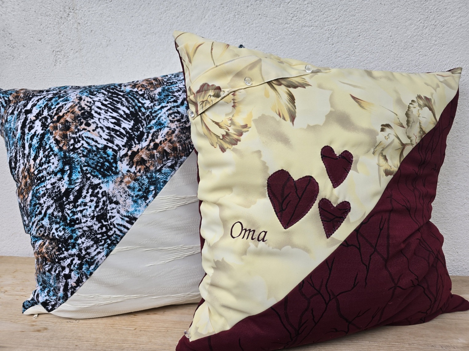 - Ich fertige i.d.R. immer beide Kissenseiten aus Kleidung (außer anders gewünscht)