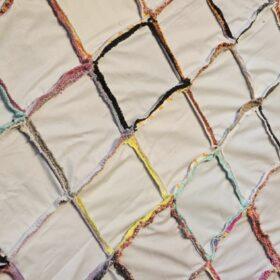 - diese Decke ist 2-lagig, d. h. ich fertige die Oberseite aus den Strickwaren an und die Unterseite wird aus buntem Baumwollstoff gefertigt