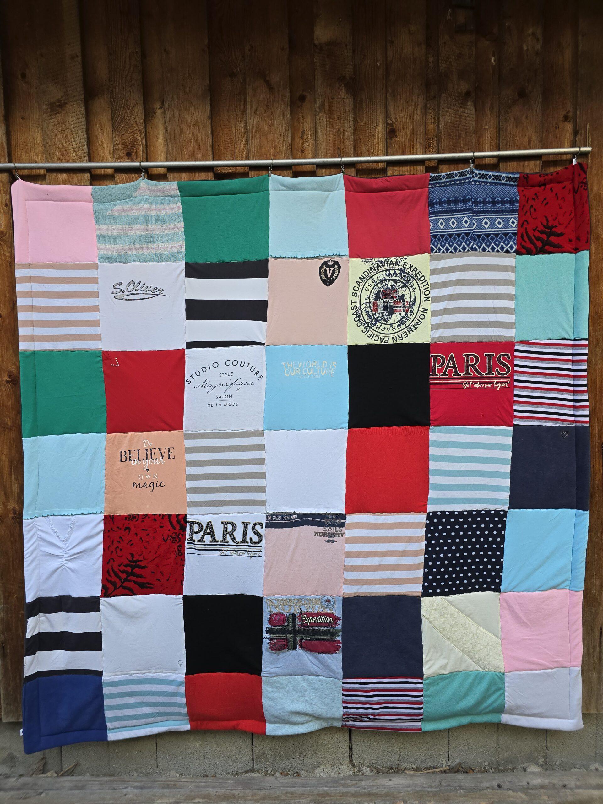 Patchworkdecke aus Kleidung Verstorbener