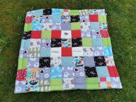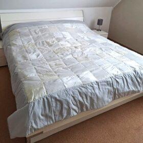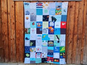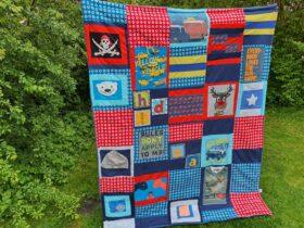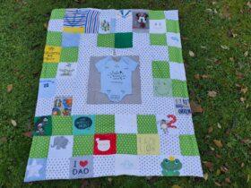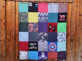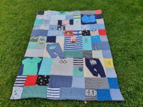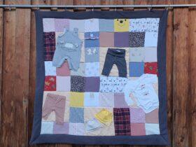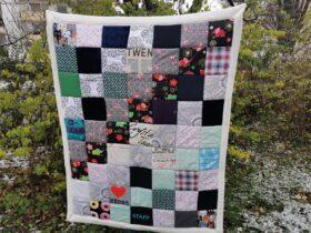 Ja, ich habe schon viele Erinnerungsdecken aus Kleidung Verstorbener genäht … allerdings sind diese Decken doch sehr persönlich – teils mit Widmungen, Namen und Fotos. Deshalb findest du hier nur ausgewählte Decken und ein paar mehr unter den Kunden-Rezensionen